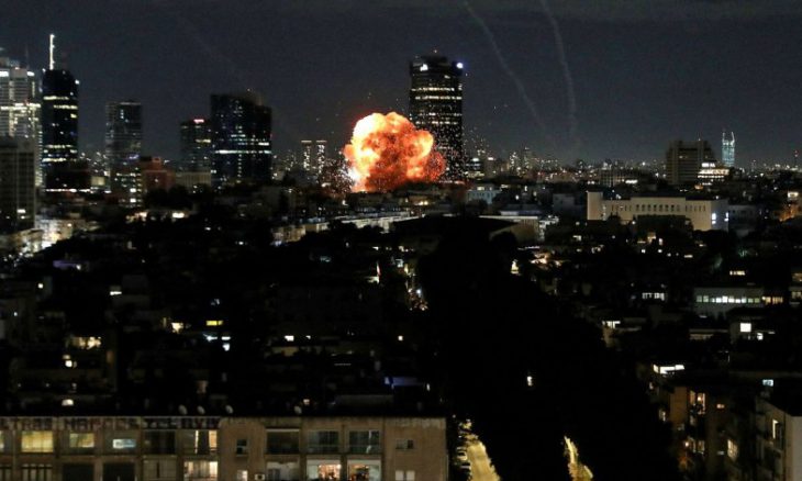 وسقط صاروخ واحد على الأقل وسط مدينة تل أبيب الأحد، ما أدى إلى أضرار مادية كبيرة.